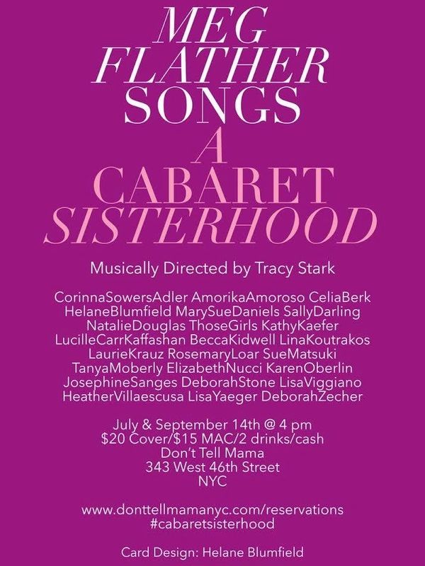 Meg Flather is a beloved and celebrated singer/songwriter in the NY cabaret world. I included one of her songs in my debut show and she was kind enough to invite me to perform that song in a celebration of her work in the summer and fall of 2019. Twenty-four Meg Flather fan/singers performed in that show and we were honored to win Best Group Show in that year's Broadway World cabaret competition.